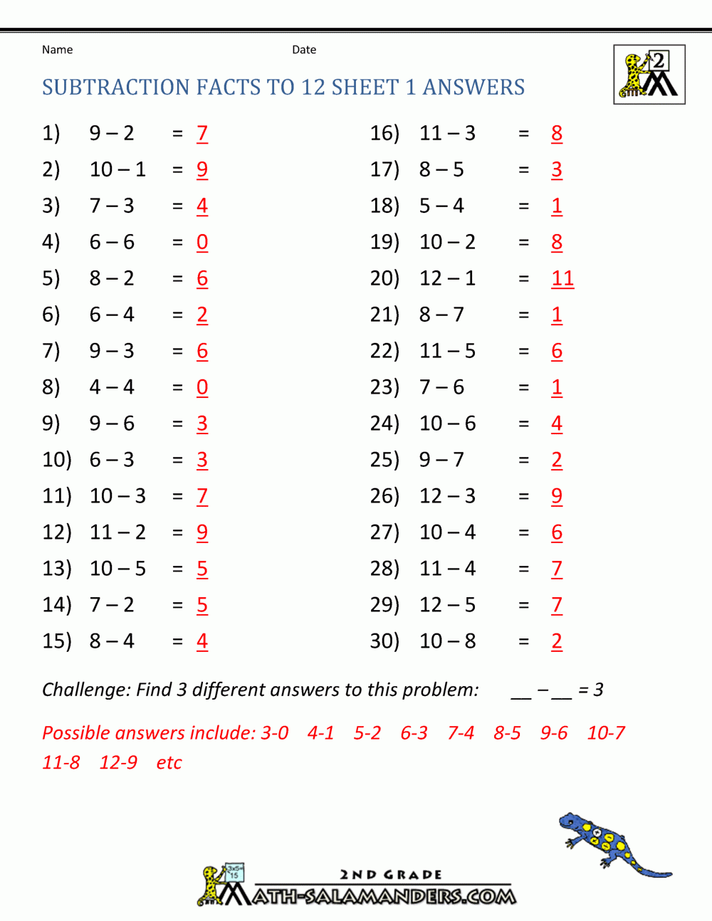 Free Subtraction Worksheets To 12