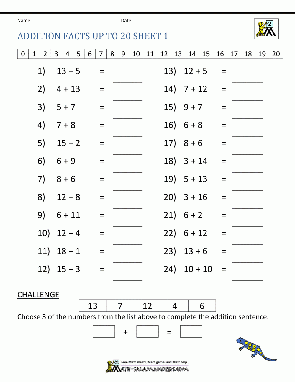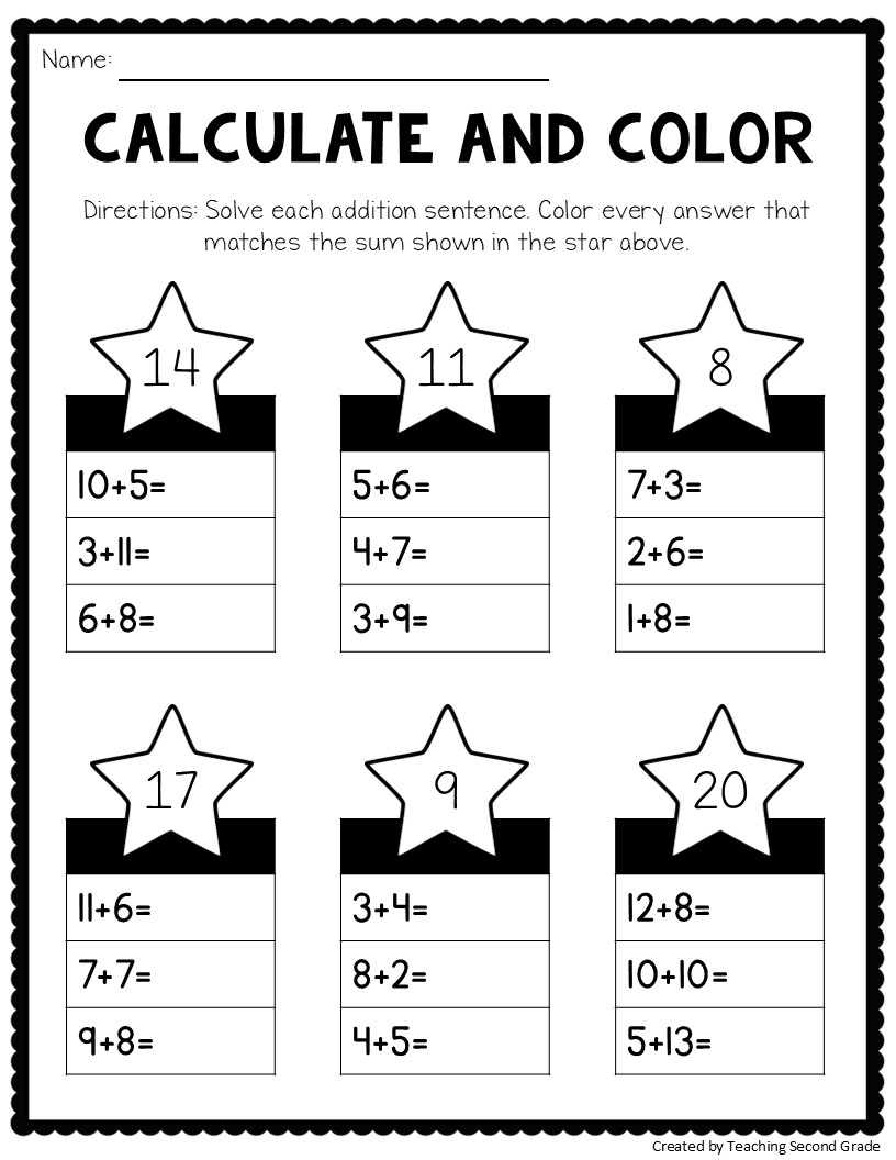 Addition Facts To 20 Worksheets Fun No Prep Math Worksheets For 1st 2nd Grade