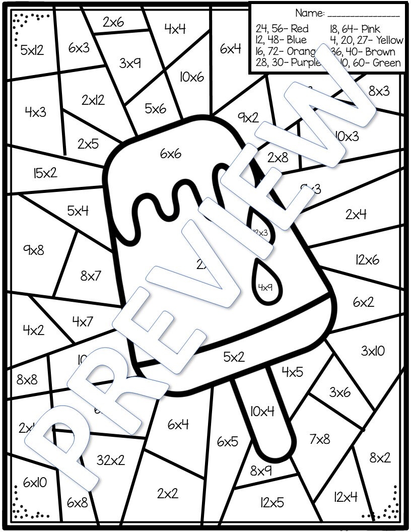 Summer Color By Number Summer Math Multiplication 3rd Grade