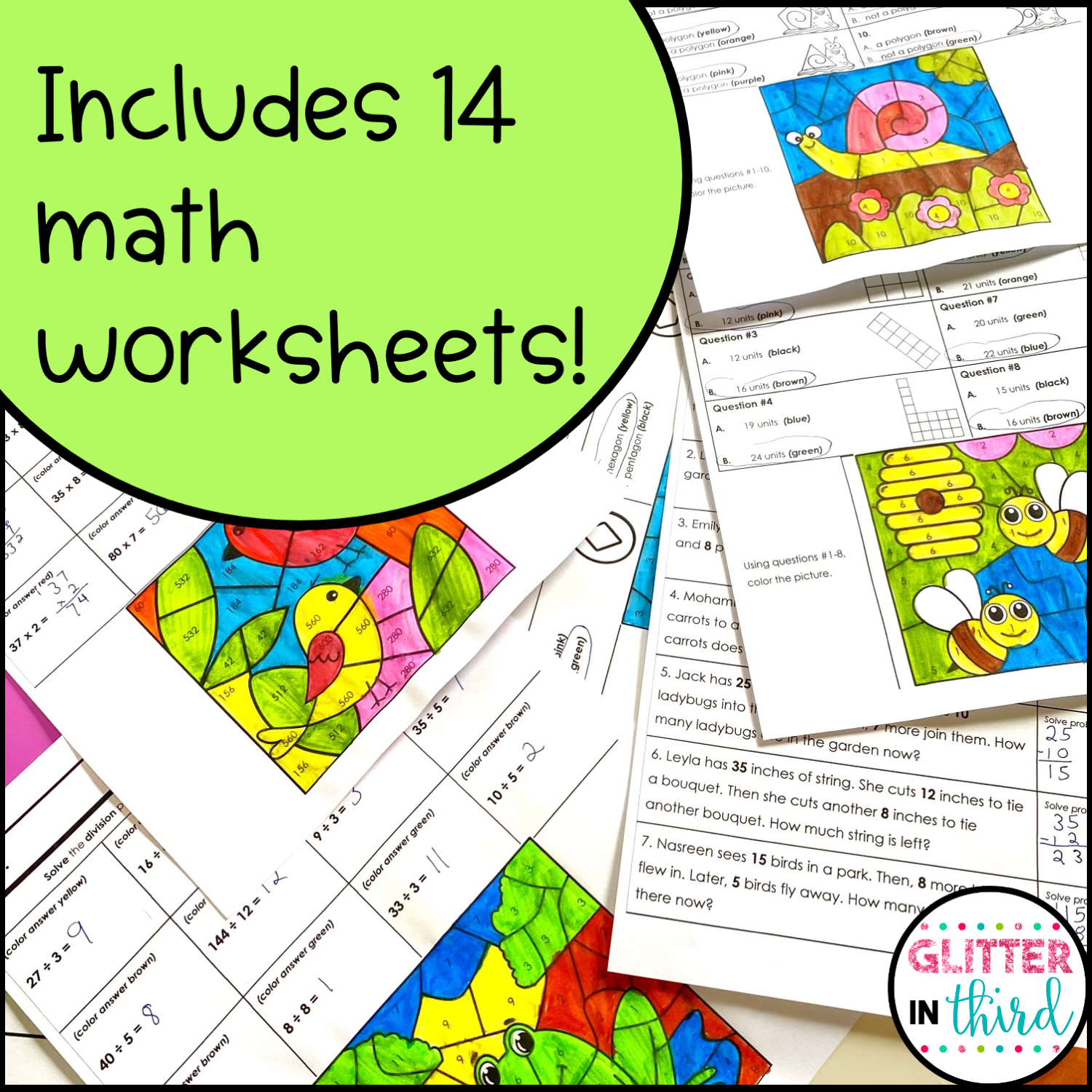 Spring Math Worksheets No Prep Color By Number Glitter In Third