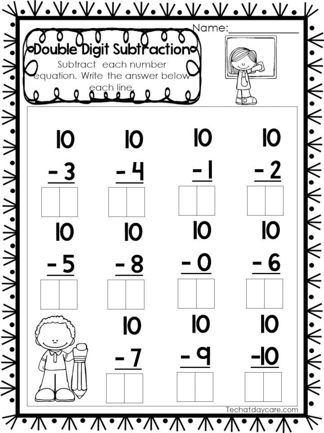 15 Printable Double Digit Subtraction Worksheets Numbers 11 20 Preschool 2nd Grade Math Etsy