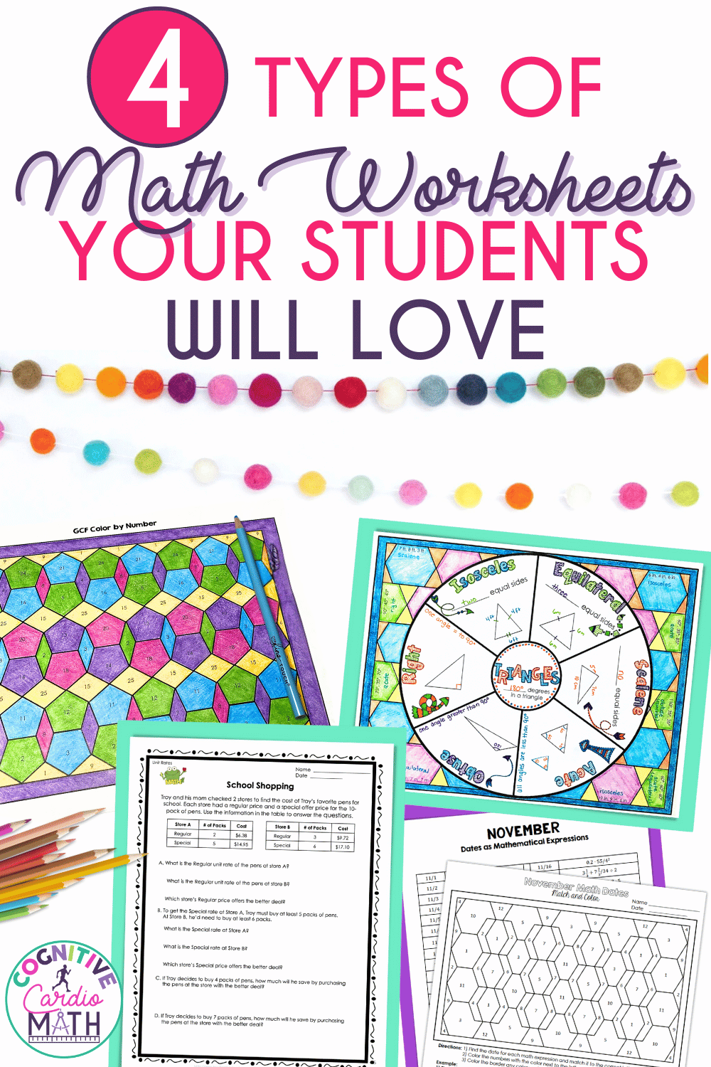 4 Types Of Middle School Math Worksheets Your Students Will Love Cognitive Cardio Math
