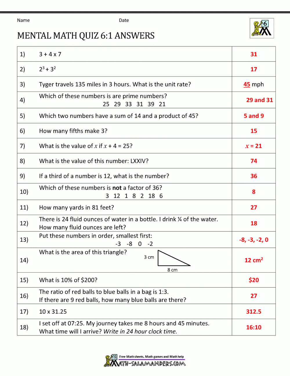 Free 6th Grade Math Worksheets Printable W Answers Mashup Math