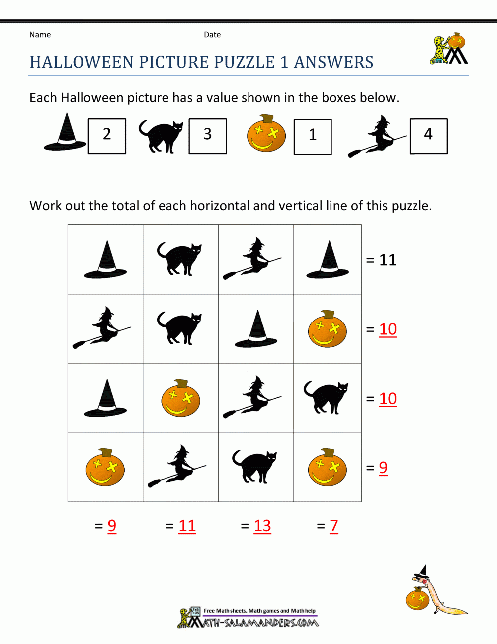 Free Halloween Math Worksheets