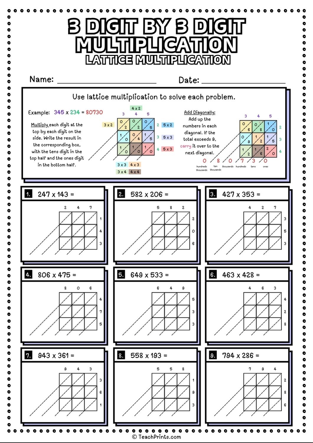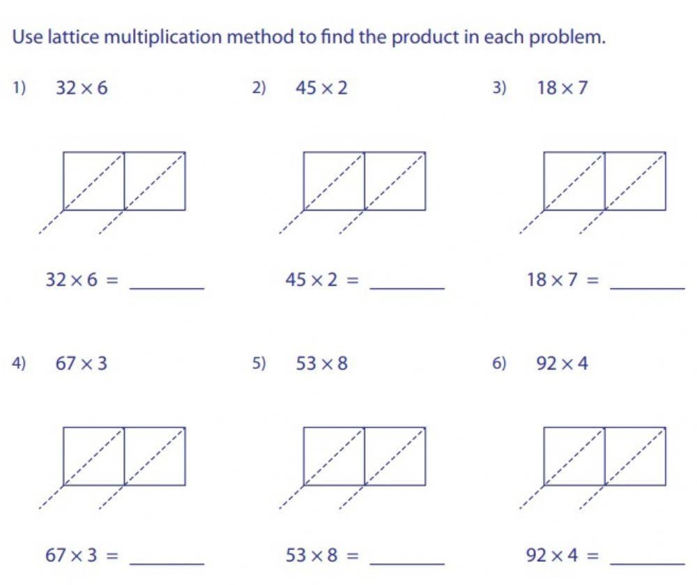 3 Digit By 2 Digit Multiplication Practice Worksheets Using Lattice Method Teacher Professional Development