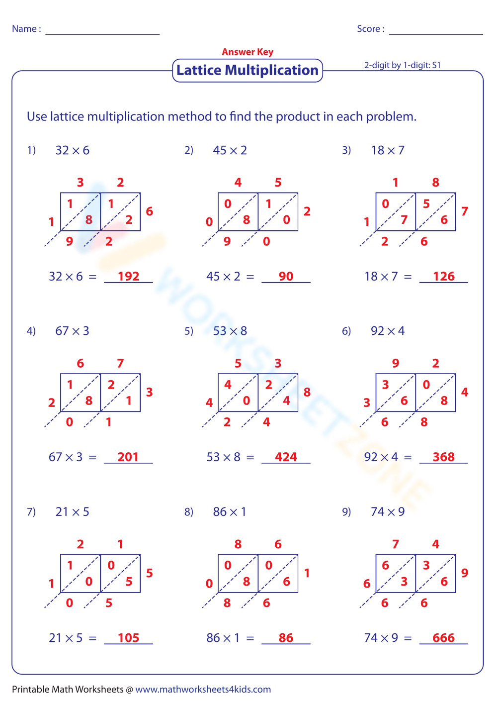 Lattice Multiplication Worksheets 2 Digit By 1 Digit U0026 2 Digit By 2 Digit Made By Teachers