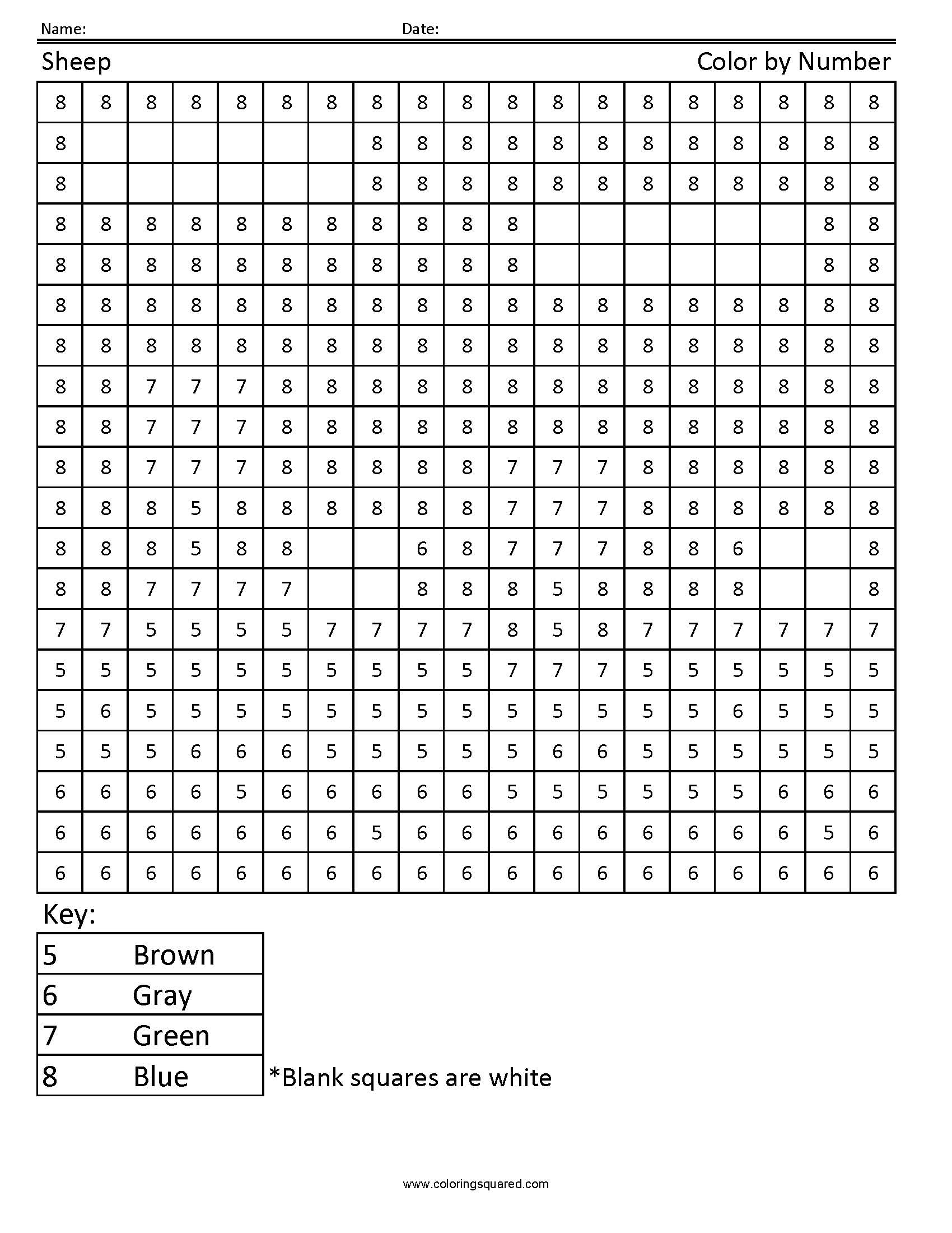 Sheep Scene Color By Number Coloring Squared