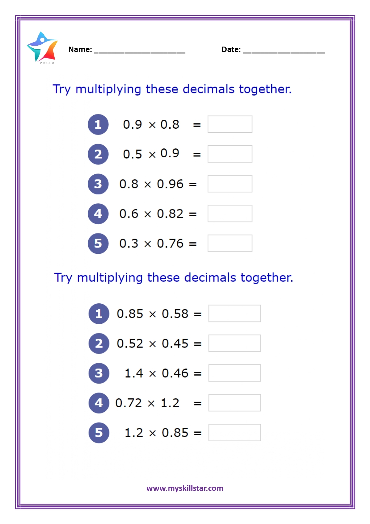 Math Worksheets For Grade 5 My Skill Star