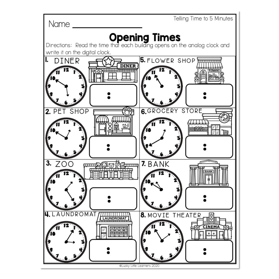 2nd Grade Math Worksheets Time Telling Time To 5 Minutes Beach Day Itinerary Lucky Little Learners