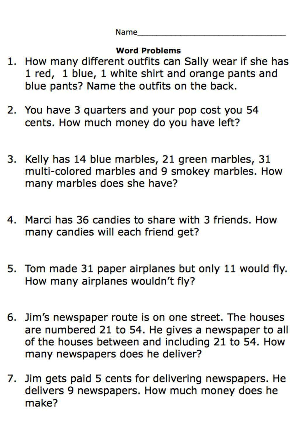Free Printable Worksheets For Second Grade Math Word Problems Worksheets Library