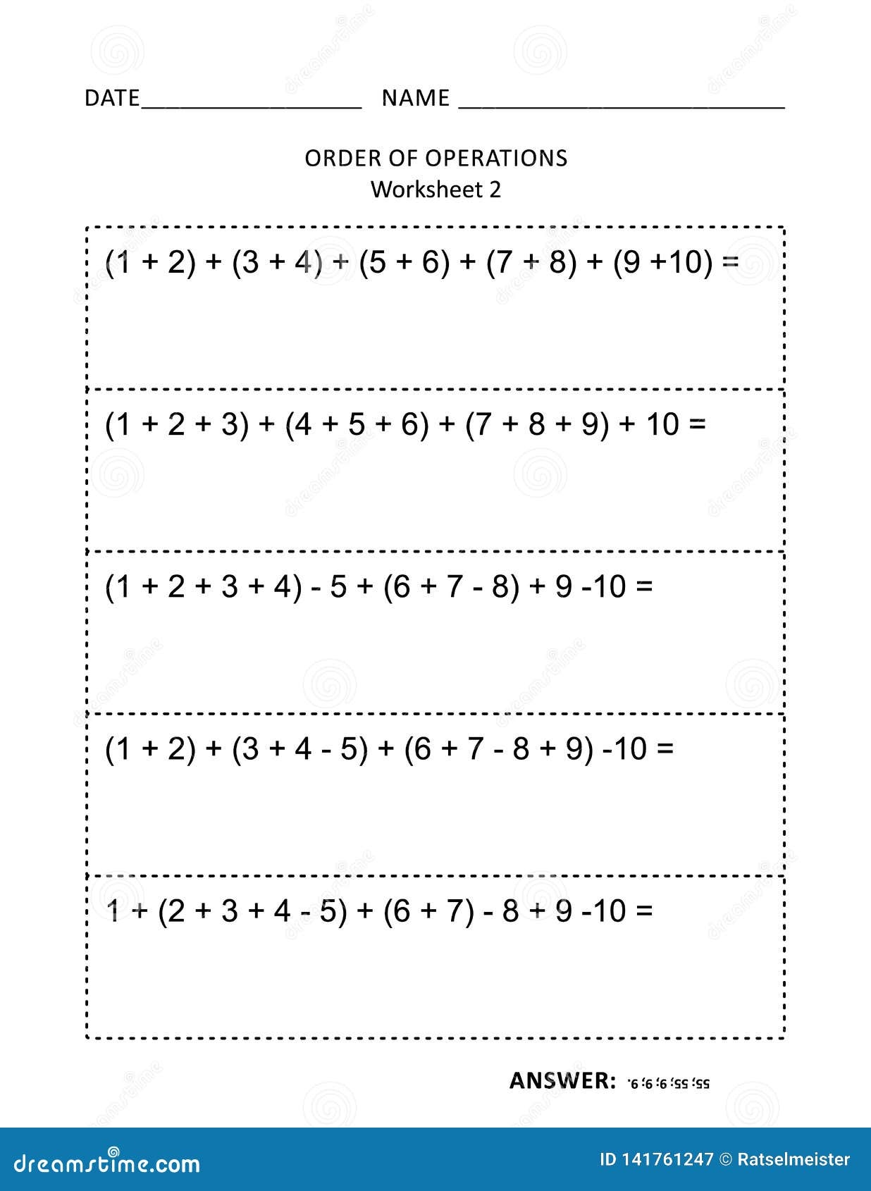 Math Worksheet For Children And Adults Stock Vector Illustration