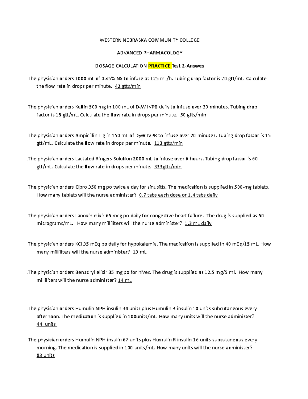 Dosage Calculation Practice Exam Ans Test 2 WESTERN NEBRASKA COMMUNITY COLLEGE ADVANCED Studocu