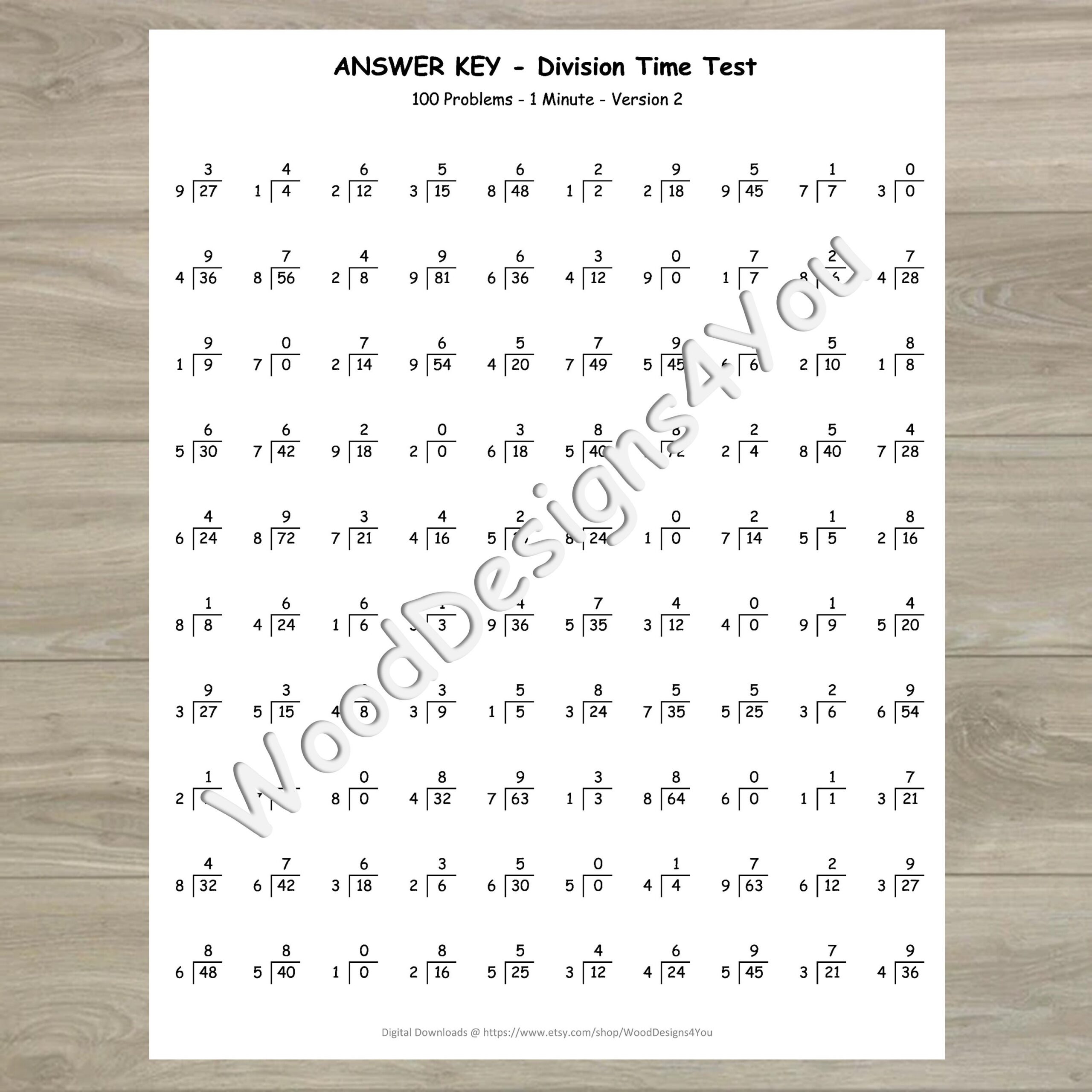 Division Worksheets Mad Math Minute Third And Fourth Grade