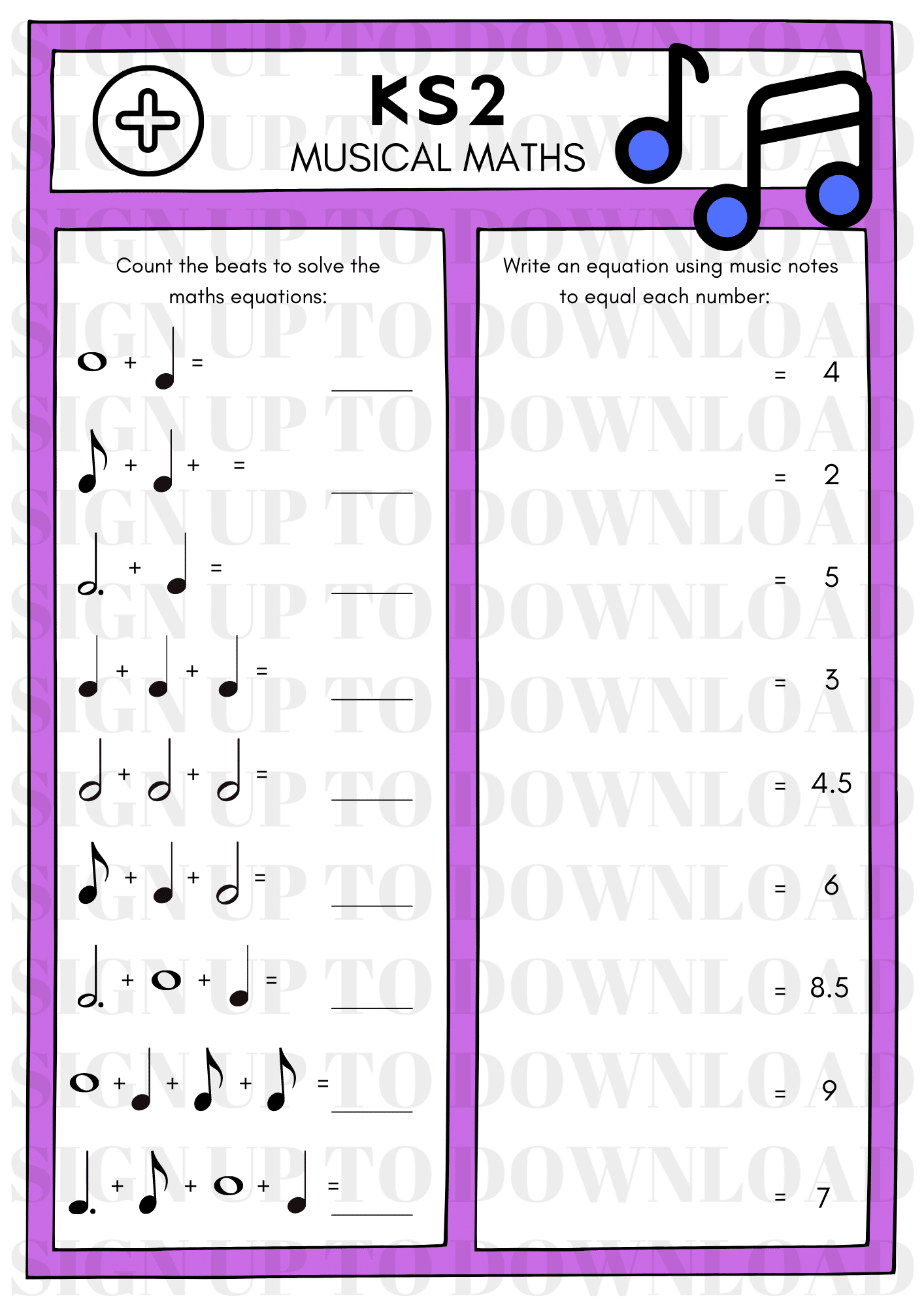 Music Math Worksheet