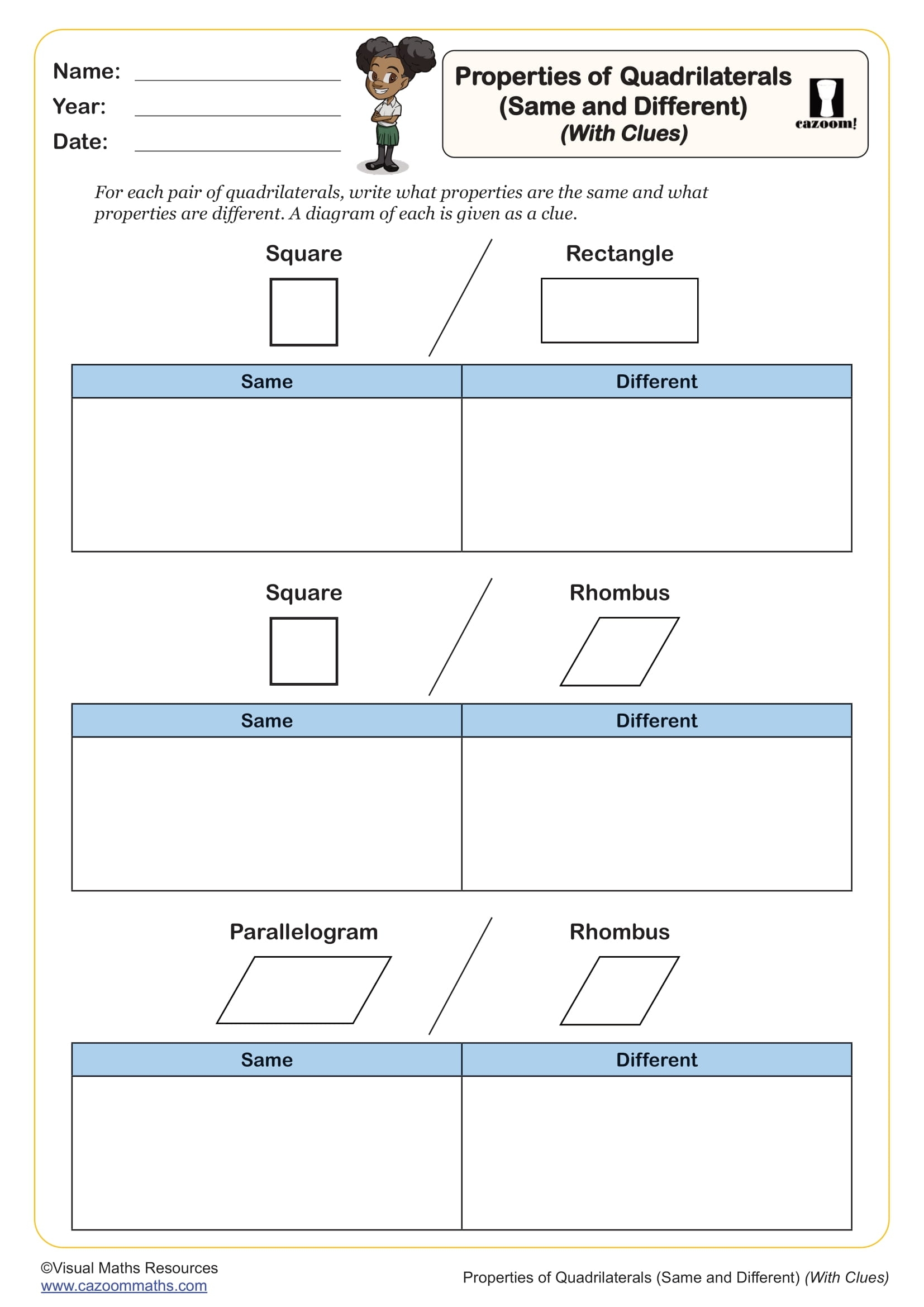 Properties Of Quadrilaterals C PDF Printable Geometry Worksheets
