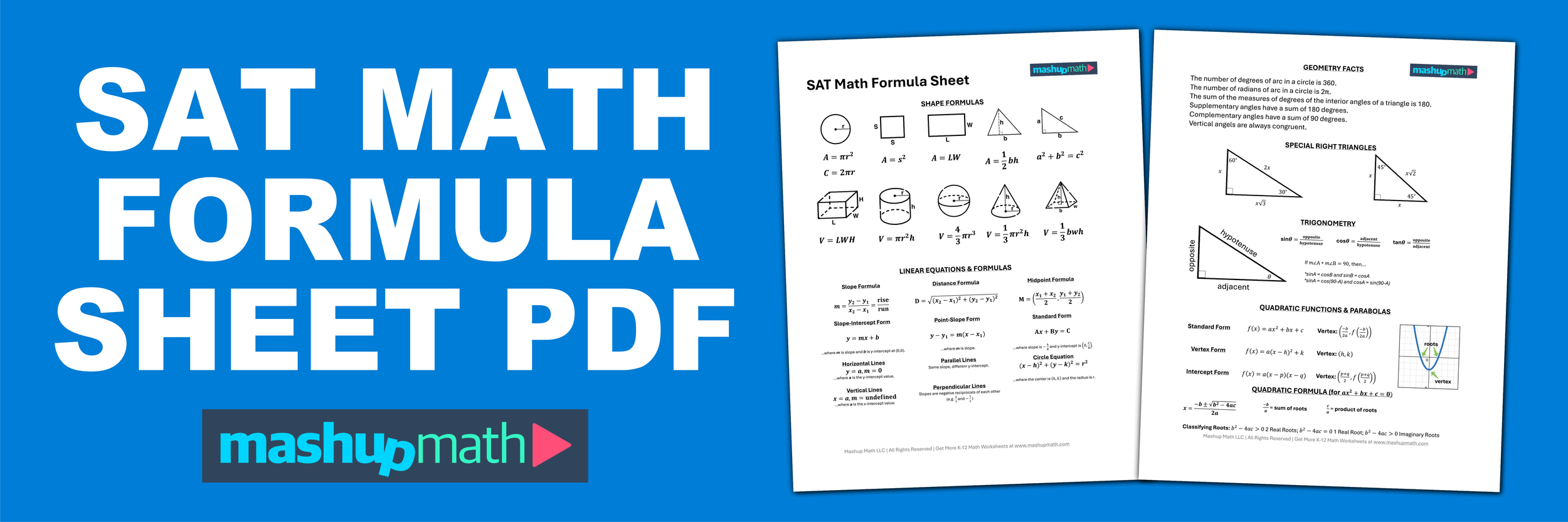 Free SAT Formula Sheet Printable PDF Mashup Math