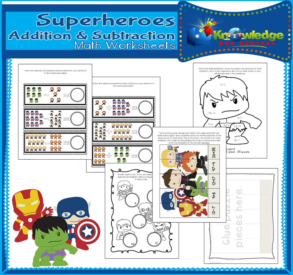 Super Heroes Addition U0026 Subtraction Math Worksheets EBOOK By Teach Simple