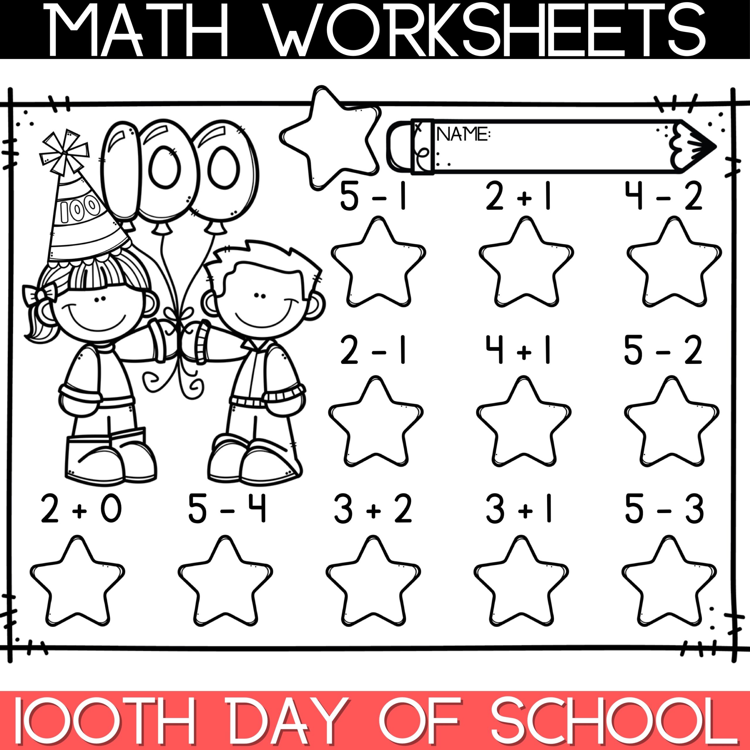 100th Day Of School Kindergarten Math Addition U0026 Subtraction