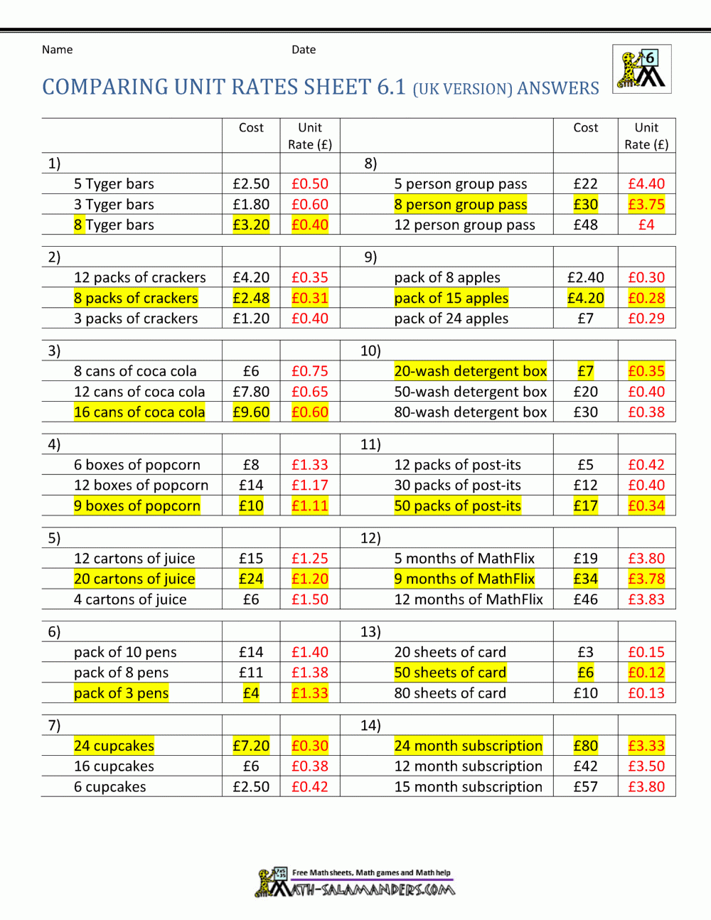 Whether you are a teacher looking for supplemental resources or a parent wanting to support your child’s learning, our unit rate math worksheets are a valuable tool. Help your students build confidence in math and develop a solid understanding of unit rates with our engaging worksheets.