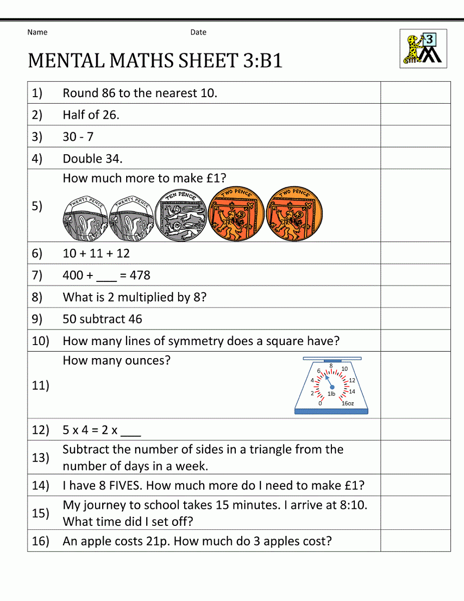 Worksheet Maths Year 3